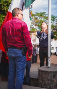 El acto fue encabezado por el presidente municipal, profesor Samuel Borbón Lara, Directora del sistema DIF municipal Mtra. Patricia Valenzuela Morales por las y los funcionarios municipales, corporaciones de seguridad y comunidad en general, quienes participaron con respeto y solemnidad en esta significativa ceremonia cívica.
