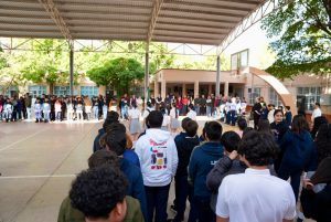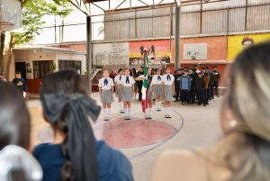 Se realizaron Honores a la Bandera en la Escuela Secundaria “Paulita Verjan No. 15”. Durante su mensaje, el presidente municipal, Prof. Samuel Borbón Lara, resaltó la importancia de la mejora continua e invitó al alumnado a esforzarse día con día para alcanzar sus objetivos, destacando que cada logro, por pequeño que parezca, contribuye a la construcción del futuro.
